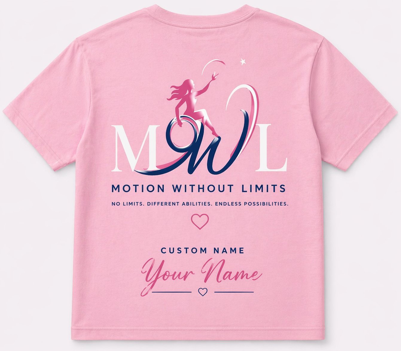 Make it personal. The Motion Without Limits Custom Name Tee lets you wear your story with pride by adding your name to a design that represents strength, movement, and limitless potential.